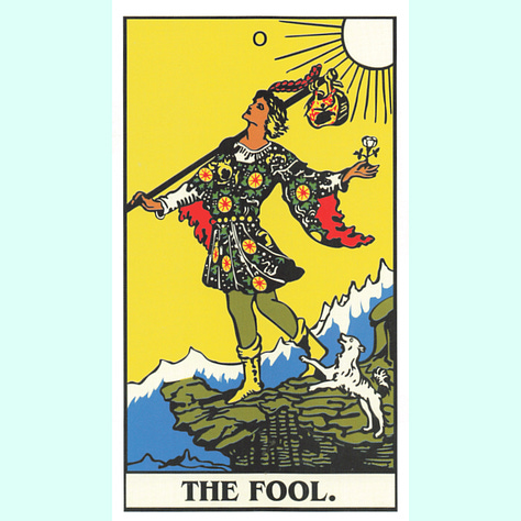 On the other side of The Fool, you have the 9 of Cups—a happy guy! Almost the most cups you can have! So this leap felt good in your heart. You thought making this leap would maybe take you from the 9 to the 10. You thought it would be emotionally fulfilling to take the big leap.