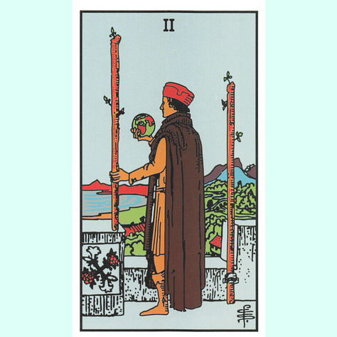 I have a suspicion. I think you want to do the creative thing but also the safe thing. That's just what I get. The 2 of Wands is a really strategic and forward-looking card. Wands are about passion and 2s are about aligned choices. And about reining in the magic of the 1s (embodied by The Magician) so we can begin to develop it—harnessing the power strategically, to where it can be diverted into the proper channel.