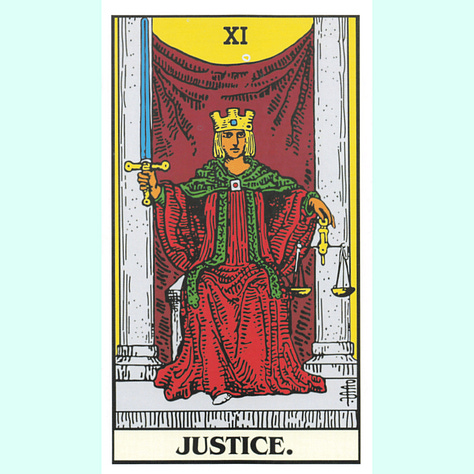 To jump right into it, you have Justice for your Stop card. Always weird and surprising to see. One the surface, for Justice, it seems pretty obvious what we're talking about. But there is more underneath the surface. Bonus content! Justice is associated with several different things. It has the astrological correspondence of Libra, which is really interesting—sort of a spiritual opposite of Virgo: a very social creature, an air sign concerned with harmony, even over The Truth.