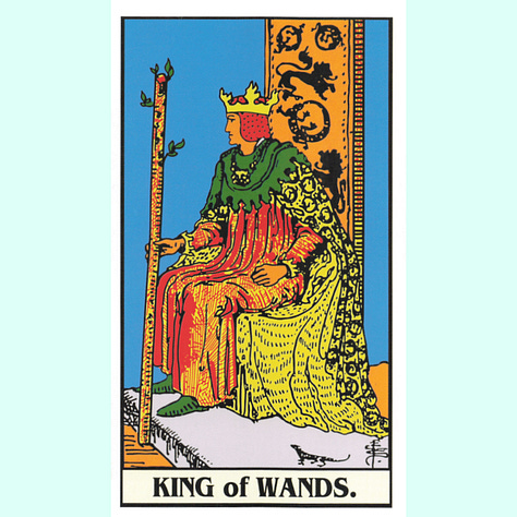 For your Start card, we have the King of Wands. I really like this. This also brings us back to the 8 of Cups. I think this is a guy who allows himself to see the big picture. Wands are imaginative and are also action oriented. They represent the element of fire. They spread, maybe a little bit recklessly. But that's part of the fun.